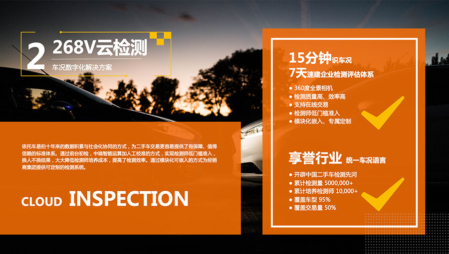 經(jīng)營范圍:二手車解決方案、二手車評估、二手車交易、268V云檢測車況數(shù)字化解決方案