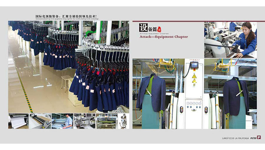 紡織板塊專注于SINFONIA、ARMONIA、REGAL精紡紗、半精紡紗、粗紡紗、花式紗等各類針織紗線、高檔精紡呢絨面料以及LANIFICIO LA MALPENGA職業(yè)裝和PALLADIO高端商務服裝的生產,年產各類無結毛紗40000噸,高檔精紡面料1000萬米,西服100萬套,襯衫200萬件。