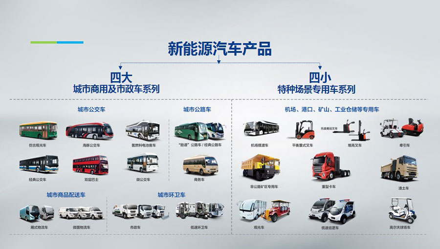 主要產(chǎn)品:純電動(dòng)物流車(chē)和叉車(chē)等;氫燃料客車(chē)和公交車(chē);純電動(dòng)客車(chē)和公交車(chē);智能儲(chǔ)能系統(tǒng);充電設(shè)備;銀隆鈦鋰電池