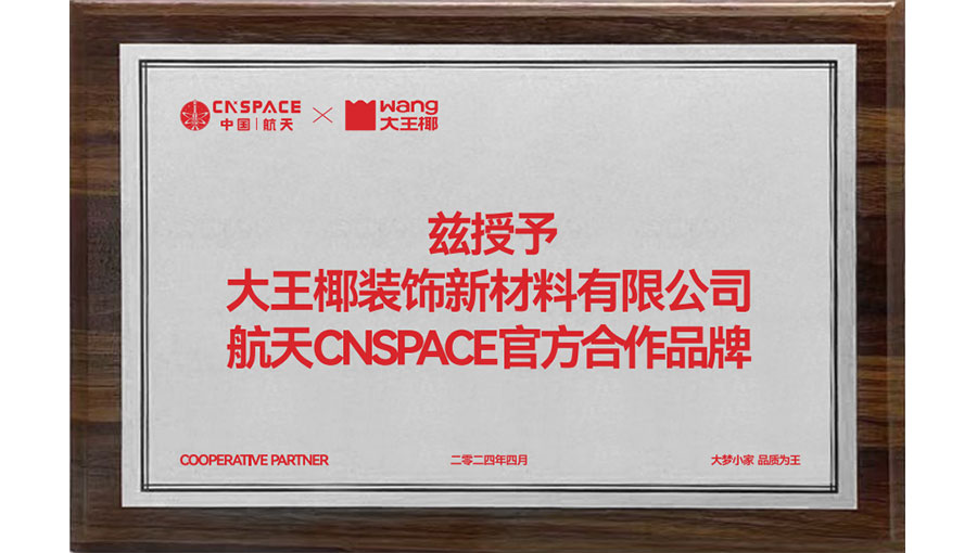 大王椰掌握5項(xiàng)關(guān)鍵除醛技術(shù),100余項(xiàng)國家技術(shù)專利,始終保持技術(shù)引領(lǐng)。大王椰不斷創(chuàng)新產(chǎn)品,陸續(xù)發(fā)布楠香木生態(tài)板、A7家具板、植萃除醛板、抗菌除醛板、A8高定板、1號(hào)原木板、雙效抗菌板、ENF級(jí)生態(tài)板、實(shí)木TT門板、PET柜門板等高端產(chǎn)品。2021年7月,大王椰正式簽約中國羽毛球隊(duì),致力于打造冠軍品質(zhì),大王椰讓更多健康產(chǎn)品走進(jìn)更多家庭。2024年4月,大王椰正式成為航天CNSPACE官方合作品牌,以航天精神為榜樣,不斷提升家居健康品質(zhì)。