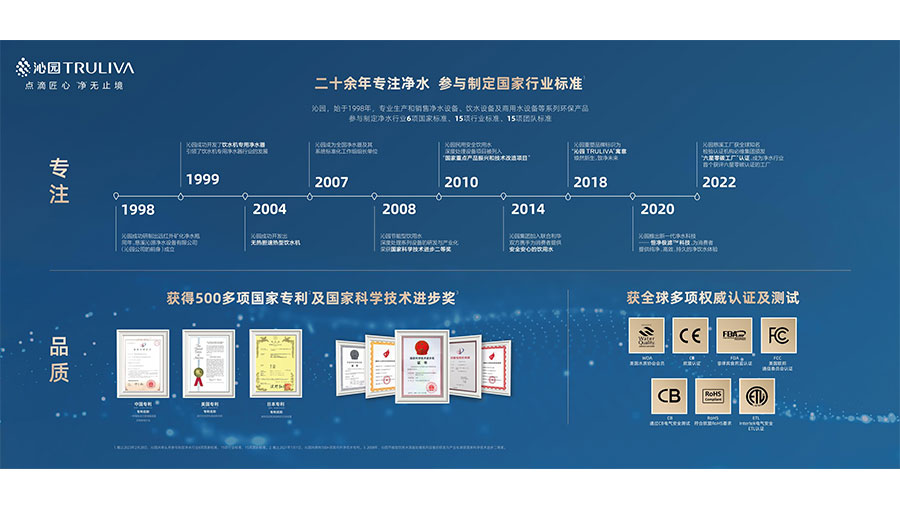 目前,沁園在杭州灣新區(qū)的生產(chǎn)基地實(shí)現(xiàn)了自動(dòng)化升級(jí),為更大的產(chǎn)量和更穩(wěn)定的品質(zhì)打下基礎(chǔ)。2018年,沁園重塑品牌標(biāo)識(shí)為“沁園TRULIVA”,寓意煥然新生,致凈未來(lái)。沁園將從品牌、創(chuàng)新、成本、渠道和企業(yè)家精神幾方面著手,依托聯(lián)合利華強(qiáng)大的品牌管理經(jīng)驗(yàn)、豐富的業(yè)務(wù)資源、成熟的人才培養(yǎng)機(jī)制和全球化的視野,致力于為中國(guó)四千萬(wàn)家庭改善健康飲水條件。2022年,沁園慈溪工廠經(jīng)過(guò)全球知名檢驗(yàn)認(rèn)證機(jī)構(gòu)必維集團(tuán)的嚴(yán)格評(píng)審,獲得“零碳工廠”最高級(jí)別(I型)“六星”認(rèn)證,成為凈水行業(yè)首個(gè)獲評(píng)六星零碳認(rèn)證的工廠。