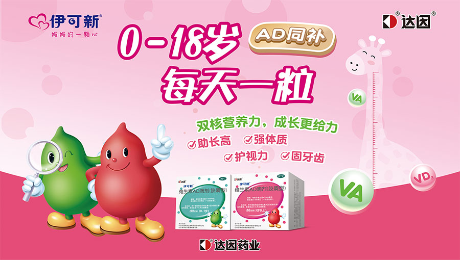 主要產(chǎn)品:伊可新?維生素AD滴劑(膠囊型)、達因?(復(fù)方碳酸鈣泡騰顆粒、甘草鋅顆粒、右旋糖酐鐵顆粒、鹽酸托莫西汀口服溶液、西甲硅油乳劑);伊可新?DHA藻油+ARA凝膠糖果、益生菌粉、多種維生素礦物質(zhì)口服液、鈣鋅口服液、維生素A維生素D軟膠囊、鈣維生素D軟膠囊、鋅軟膠囊