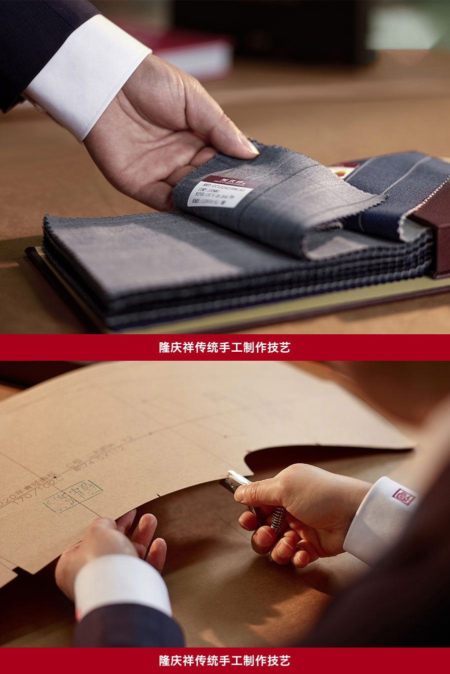 隆慶祥始于1522年,擁有五百年家族制衣史。先祖因制衣工藝精湛、裁作舒適,明朝得賜“袁氏裁作”,清代獲賜“天慶祥瑞”,為感念皇恩,先祖將裁案制成匾額,改字號為“隆慶祥”。隆慶祥將“量身定制,私人裁縫”“1+1”量身定制貼心服務作為核心模式,為客戶提供“一站式”尊貴服務。