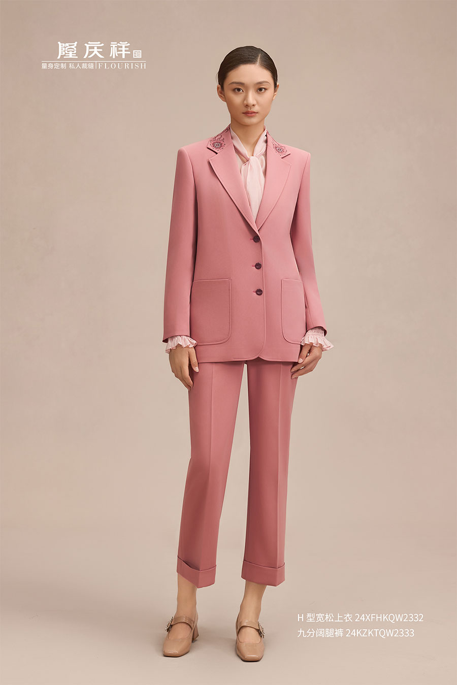 隆慶祥以量身定制為核心特色,提供從面料選擇、款式設計到工藝優(yōu)化、售后服務的全程服務,產品均為“單人單版、單版單裁、單裁單做”,以獨一無二的專屬性彰顯尊貴榮耀。每套西裝定面料、定款式、制版、裁剪、制作、試樣、后道整理、取件共八道工序,均采用406道工序,而且大量工序是手工制作。產品均“單人單版、單版單裁、單裁單做”,以獨一無二的專屬性彰顯尊貴榮耀。