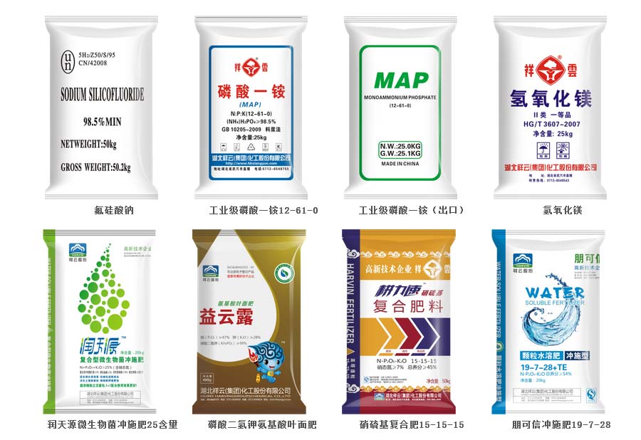主要產(chǎn)品:祥雲(yún)、紅獅犸、紅蕾、火炬牌磷酸一銨、磷酸二銨、復(fù)肥、水溶性肥料、氟硅酸鈉、工業(yè)磷酸二氫銨、磷酸二氫鉀、工業(yè)氫氧化鎂、間苯二酚、過磷酸鈣