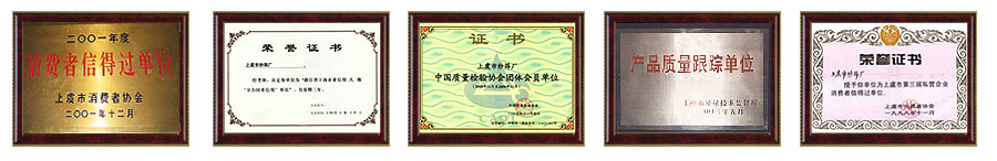 公司歷年被上虞市人民政府命名為“重合同,守信用”單位、浙江省一級信用企業(yè)、消費(fèi)者信得過單位,取得“全面質(zhì)量管理達(dá)標(biāo)”證書,是上虞市質(zhì)量技術(shù)監(jiān)督質(zhì)量跟蹤企業(yè)、中國質(zhì)量協(xié)會團(tuán)體會員單位。