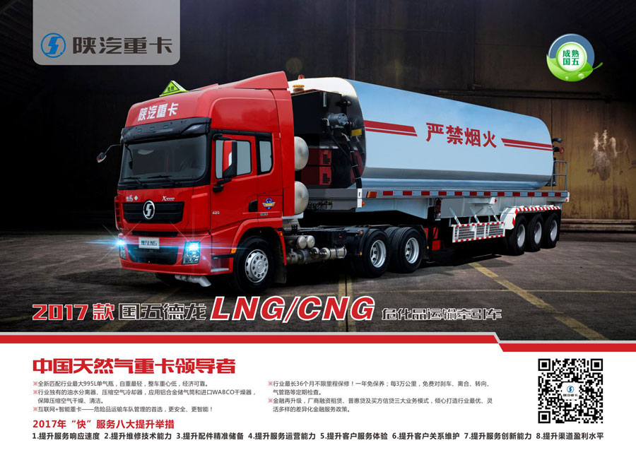 作為節(jié)能與新能源汽車(chē)產(chǎn)業(yè)的倡導(dǎo)者和推動(dòng)者,陜汽在節(jié)能與新能源商用車(chē)領(lǐng)域具有一流的技術(shù)及產(chǎn)品研發(fā)優(yōu)勢(shì),擁有38項(xiàng)LNG重卡專利技術(shù),承擔(dān)了國(guó)家863新能源商用車(chē)開(kāi)發(fā)項(xiàng)目,具備了新能源商用車(chē)系統(tǒng)集成及核心零部件開(kāi)發(fā)能力。在LNG、甲醇、二甲醚等節(jié)能重卡領(lǐng)域市場(chǎng)占有率超過(guò)45%;純電動(dòng)碼頭牽引車(chē)成功進(jìn)入美國(guó)市場(chǎng),實(shí)現(xiàn)了中國(guó)重卡產(chǎn)品在歐美發(fā)達(dá)國(guó)家市場(chǎng)的突破。