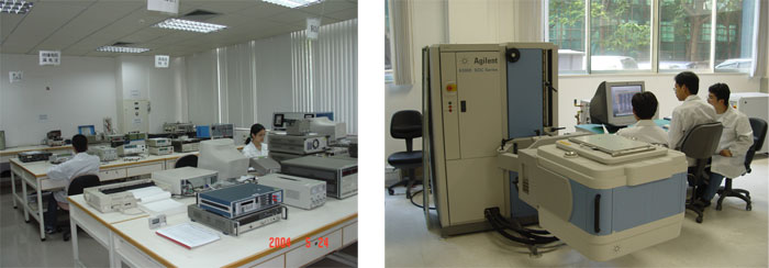 在產(chǎn)品檢測方面經(jīng)過近半個(gè)世紀(jì)的積累和發(fā)展,檢測中心已經(jīng)成為擁有專業(yè)試驗(yàn)場地2000多平方米,各類先進(jìn)儀器設(shè)備700多臺/套,專業(yè)技術(shù)人員60多人的專業(yè)檢測試驗(yàn)室。具有滿足國際最高標(biāo)準(zhǔn)的恒溫恒濕間300平方米、標(biāo)準(zhǔn)測試間600多平方米、標(biāo)準(zhǔn)試驗(yàn)大廳1000多平方米、集成電路萬級凈化測試間250平方米。試驗(yàn)室內(nèi)有保證試驗(yàn)正常進(jìn)行的能源、光、電和通風(fēng),并有專門設(shè)施監(jiān)控環(huán)境條件。測量間內(nèi)的環(huán)境溫度長期控制在23±2℃,相對濕度為50±5%RH。各類試驗(yàn)間均能滿足溫度15~35℃,相對濕度45~75%RH這一條件。