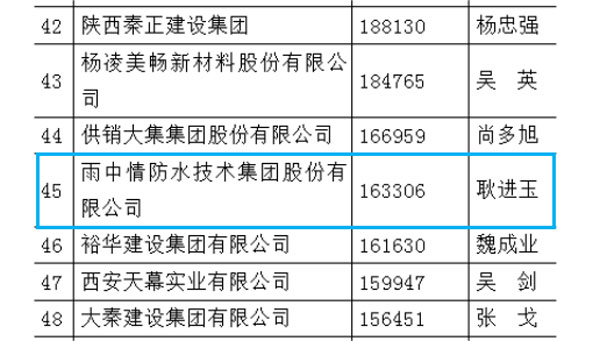 ???????雨中情連續(xù)三年上榜陜西民營50強企業(yè)