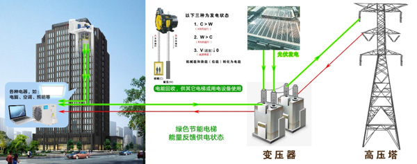 愛(ài)登堡自主研發(fā)的集成四象限變頻器,利用上升和下降的不平衡重量將勢(shì)能轉(zhuǎn)化為動(dòng)能和電能發(fā)電,給樓宇的用電設(shè)備使用、減少樓宇設(shè)備向外界獲取的電能。愛(ài)登堡綠色電梯節(jié)能減碳技術(shù),降低產(chǎn)品能耗,減少環(huán)境污染,推動(dòng)社會(huì)綠色低碳發(fā)展,為實(shí)現(xiàn)碳達(dá)峰碳中和做出一份貢獻(xiàn)。