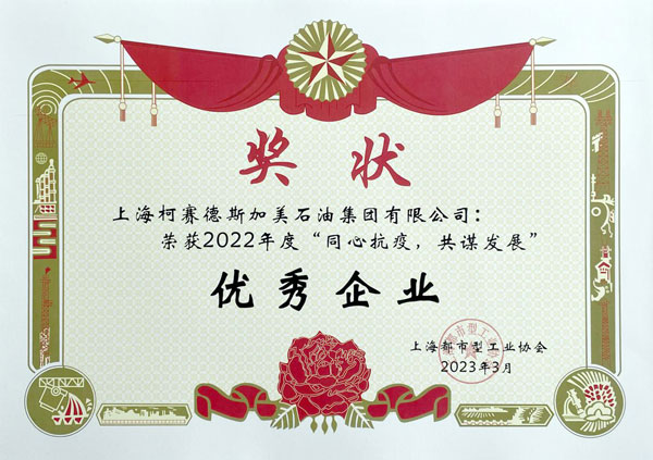 柯賽德斯加美石油集團(tuán)被授予“2022年度‘同心抗疫,共謀發(fā)展’優(yōu)秀企業(yè)”稱號(hào)