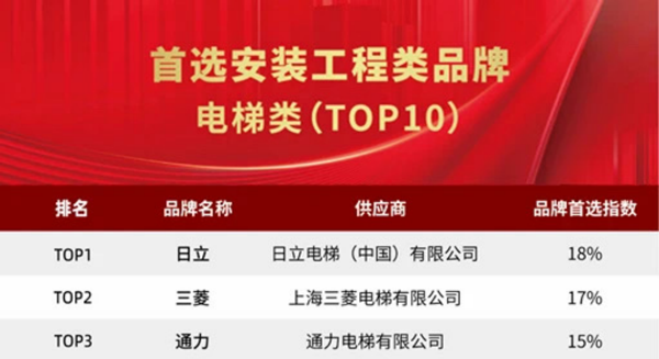 電梯類NO.1 日立電梯連續(xù)13年入選中國(guó)房地產(chǎn)首選供應(yīng)商