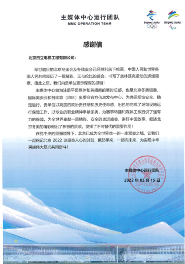 日立電梯還為第24屆北京冬季奧林匹克運(yùn)動(dòng)會(huì)兩大賽區(qū)6大場(chǎng)館、提供了超過200臺(tái)電扶梯產(chǎn)品,包括唯一新建冰上競(jìng)賽場(chǎng)館“冰絲帶”,并且在長達(dá)兩個(gè)多月的駐點(diǎn)保障期間達(dá)成零故障護(hù)航目標(biāo),贏得冬奧組委的認(rèn)可。