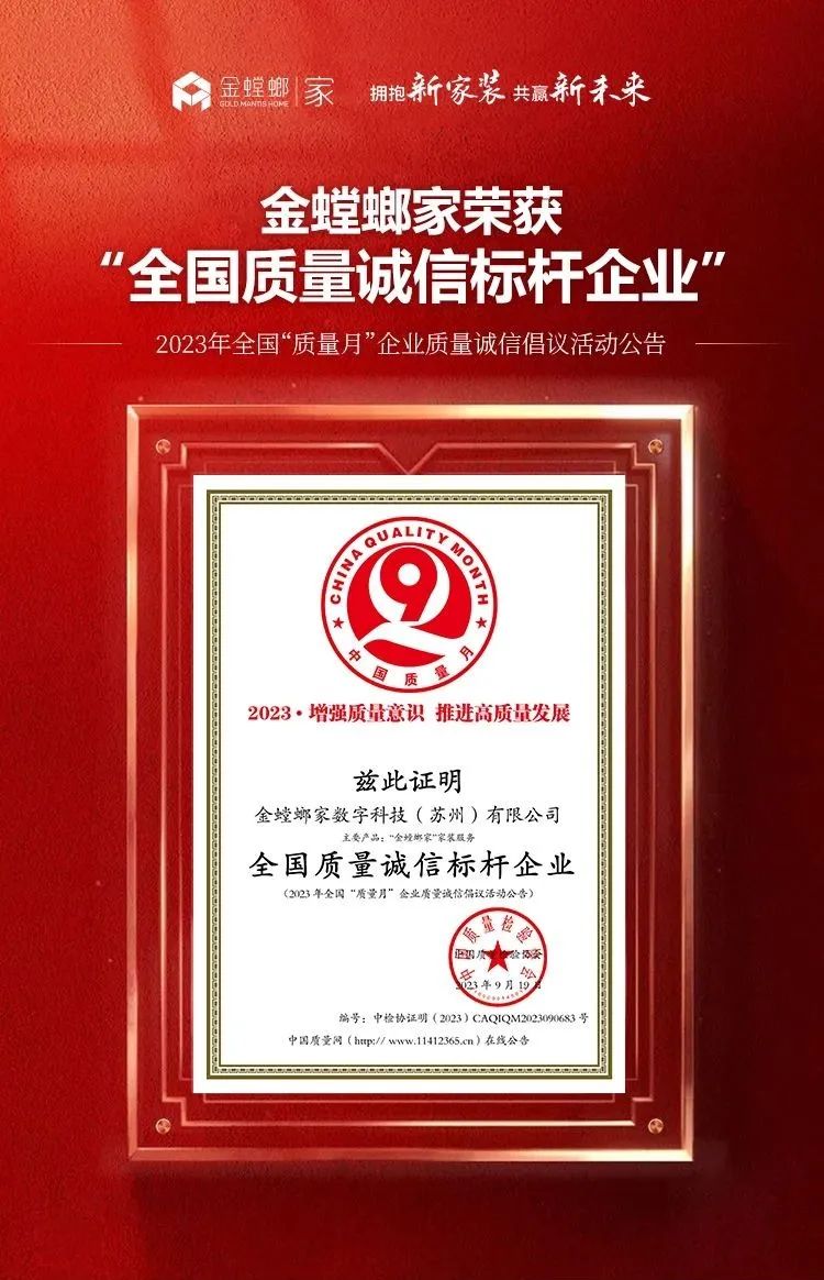 共筑質(zhì)量誠(chéng)信!金螳螂家再次榮獲「全國(guó)質(zhì)量誠(chéng)信標(biāo)桿企業(yè)」榮譽(yù)稱號(hào)